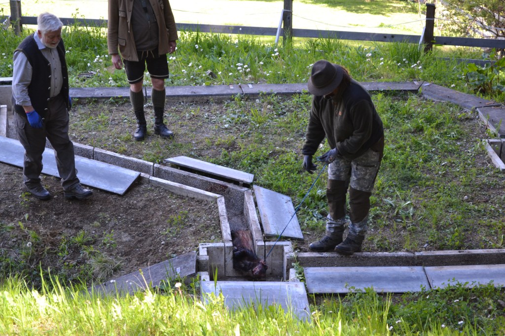 Am Sonntag ging es dann zum Kunstbau auf dem Haimingerberg. Dort wies uns Gerhard, der fleißige Bauwart des Klubs, in den Ablauf der Bauübung am toten Dachs, ein. Zu unserer Überraschung gingen alle unsere Hunde mit Freude in den Bau und an den Dachs, zumal es für fast alle das erste Mal war, dass sie Kunstbau Erfahrung machen. Natürlich wollten wir auch etwas kulinarisches zum Wochenende beitragen, deshalb gab es zum Mittagessen, Speck, Kaminwurzen, Schüttelbrot und Wein aus Südtirol.