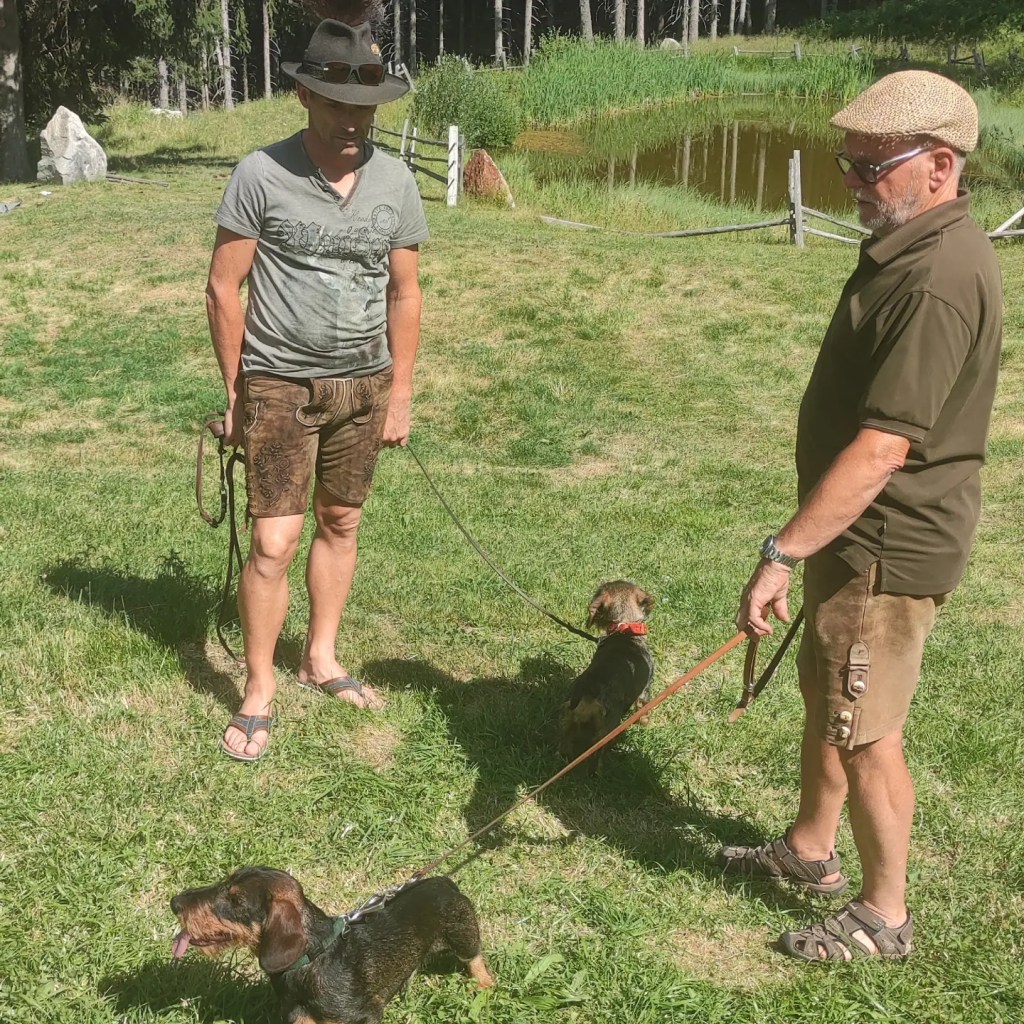 Am 17. Juli fand unser gemeinsamer Familienausflug statt. Unser Ziel war dieses Mal die Marlinger Jagdhütte unterhalb vom Vigiljoch. Gemeinsamer Treffpunkt war der Parkplatz bei den Eggerhöfen und von dort ging es gemeinsam zu Fuß bis zur Jagdhütte. Das Wetter war herrlich und so konnten wir uns bei Speis und Trank verwöhnen lassen. Franz zauberte uns ein paar seiner Grillspezialitäten vom Grill und als Nachtisch gab es selbstgemachte Kuchen. Gemeinsames watten war natürlich auch den ganzen Tag angesagt und so hielten wir es bis zum späten Nachmittag bei der Hütte aus. Leider waren wir heuer nicht sehr viele, da einige Mitglieder wegen anderweitiger Termine oder krankheitsbedingt nicht kommen konnten. Aber die dabei waren hatten Spaß und auch die Hunde waren sehr brav und konnten zur Abkühlung eine Runde im Teich schwimmen. Vielen Dank an Franz und Werner für die tatkräftige Unterstützung und dem Jagdrevier Marling, dass uns die Hütte für unseren Ausflug zur Verfügung gestellt wurde.