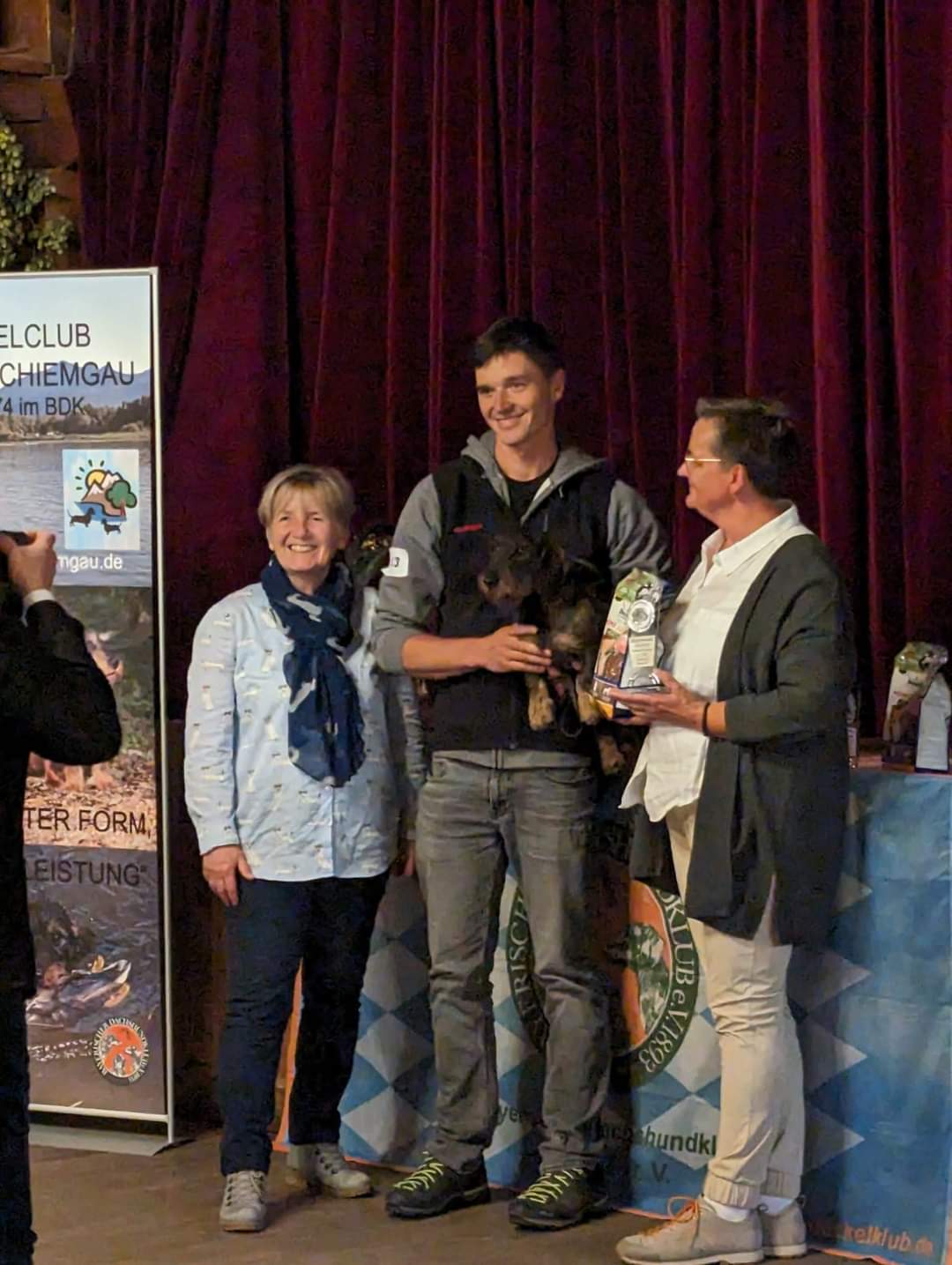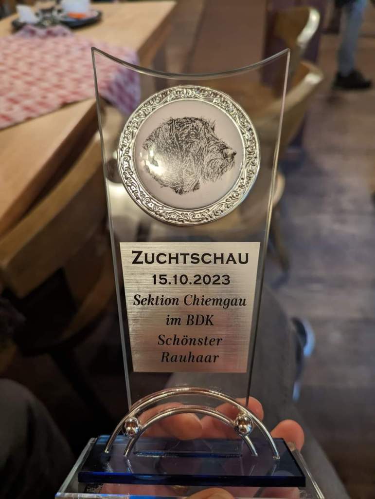 Dominik Knoll bekam mit seinem Rudi (Ebenholz vom Paternbichl) bei der Zuchtschau der Sektion Chiemgau, nicht nur ein vorzüglich, sondern sogar den Preis für den schönsten Rauhaardackel. Die zwei können zurecht stolz auf sich sein, und wir als Klub auch. Herzlichen Glückwunsch.
