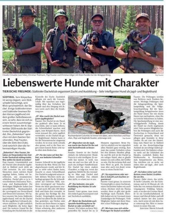 Ein Beitrag unseres Klubs in der Tageszeitung „Dolomiten“